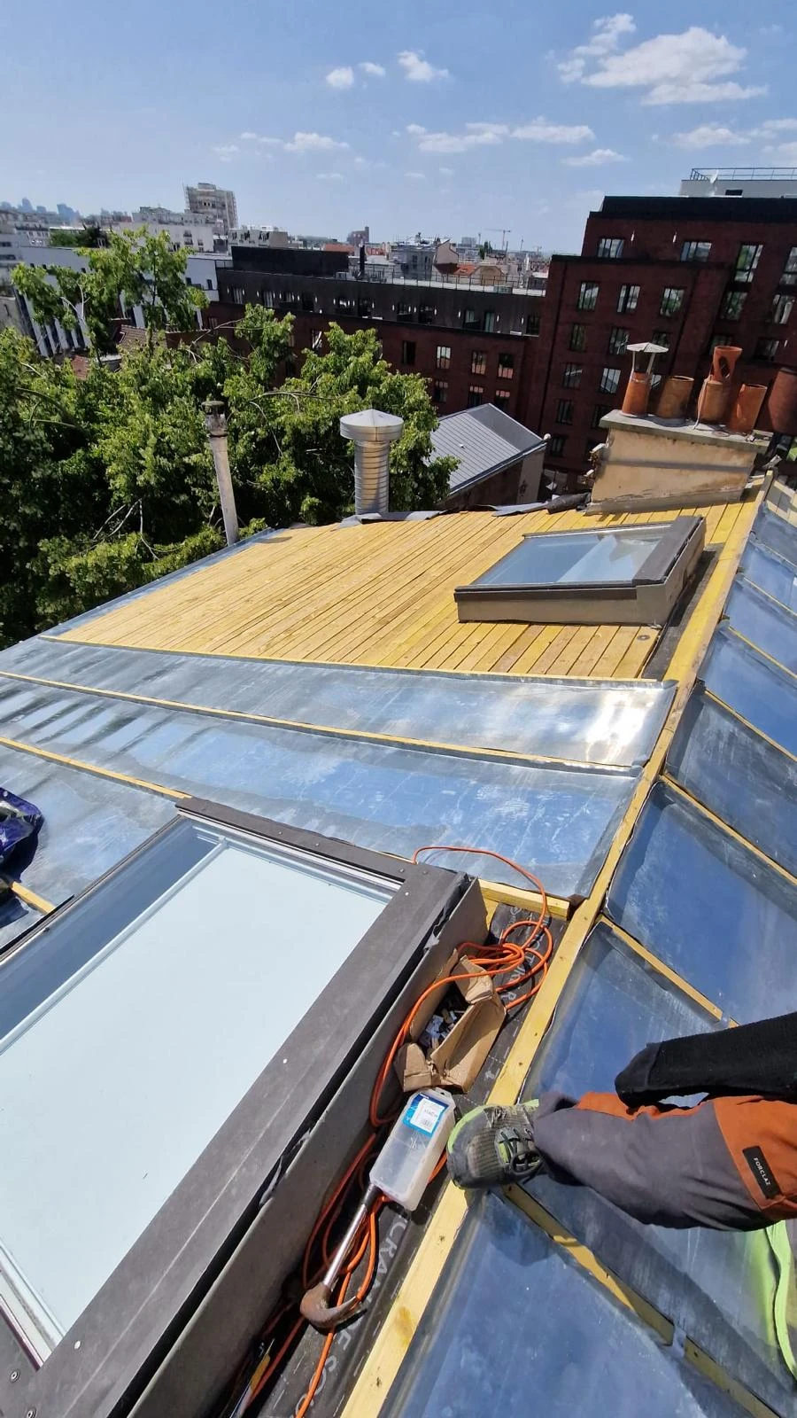 Gouttières zinc/alu, solins, noues, abergements et pose de fenêtres de toit Velux pour lumière et confort.