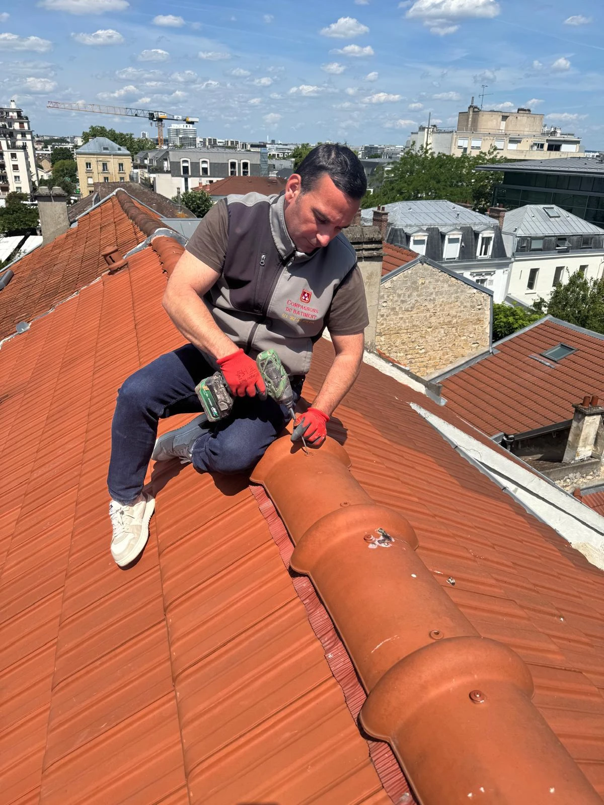 Depuis plus de 45 ans, Les Compagnons du Bâtiment incarnent l’excellence artisanale dans le domaine de la couverture à Colombes et dans tout le département des Hauts-de-Seine 92. Notre entreprise familiale de couvreur professionnel, transmise de génération en génération depuis 1978, met son expertise et son savoir-faire au service de vos projets de toiture résidentielle et commerciale, qu’il s’agisse de rénovation complète de toiture, de réparation de toit en urgence ou d’entretien préventif de couverture. Spécialisés dans tous types de matériaux — tuiles mécaniques ou plates, ardoises naturelles, zinc traditionnel, bac acier ou toitures végétalisées — nous adaptons nos techniques aux exigences spécifiques de chaque chantier.