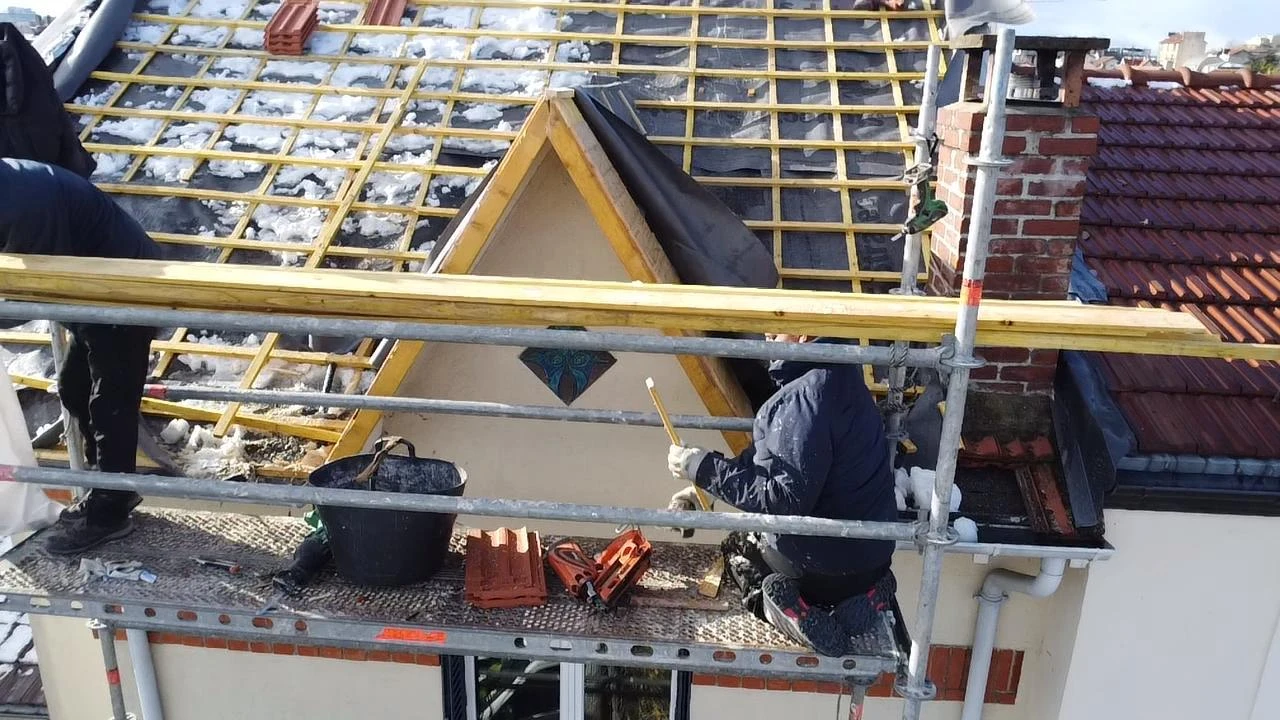 La rénovation de toiture à Colombes et dans tout le Hauts-de-Seine constitue une étape essentielle dans l’entretien et la valorisation de votre patrimoine immobilier. Que votre toit soit en tuiles terre cuite traditionnelles, en ardoises naturelles d’Angers, en zinc à joint debout, en tuiles béton ou en bac acier isolé, nos artisans couvreurs possèdent l’expertise technique approfondie nécessaire pour mener à bien tous types de travaux de réfection de toiture. Avant toute intervention de rénovation, nous réalisons systématiquement un diagnostic toiture gratuit complet et minutieux de l’état de votre couverture, permettant d’identifier précisément les problématiques existantes (tuiles poreuses, infiltrations d’eau, isolation défaillante, ventilation insuffisante) et de vous proposer les solutions les plus adaptées à votre situation spécifique et à votre budget de rénovation.