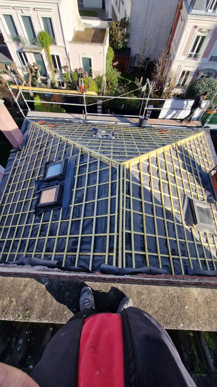 Nos chantiers de rénovation toiture Hauts-de-Seine respectent scrupuleusement les normes techniques DTU (Documents Techniques Unifiés) en vigueur dans le bâtiment, notamment le DTU 40.11 pour la couverture en ardoises, le DTU 40.23 pour les travaux de zinguerie, le DTU 40.24 pour les toitures en tuiles béton et le DTU 40.25 pour les couvertures en tuiles terre cuite à emboîtement, ainsi que toutes les règles de l’art ancestrales du métier de couvreur-zingueur. Nous accordons une attention toute particulière à la ventilation de la sous-toiture, élément technique crucial et souvent négligé pour éviter les problèmes graves de condensation, de développement de moisissures et de dégradation prématurée accélérée des matériaux isolants et de la structure bois. L’isolation de toiture par l’extérieur (méthode Sarking) ou par l’intérieur est également au cœur de nos préoccupations techniques : une toiture correctement isolée selon les normes RT2012 ou RE2020 permet de réaliser des économies d’énergie de chauffage très substantielles pouvant atteindre 30% tout en améliorant significativement le confort thermique et acoustique de votre habitation, été comme hiver.